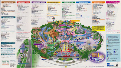Here’s where it gets good. At this point in time, New Tomorrowland construction was in full swing. Much of the land was closed off to guests. Notice the Astro Jets are missing! They were closed and removed at this point. Above Tomorrowland on the map there is a giant blue arrow informing guests of the path they can take to reach reach Space Mountain and Starcade. Captain EO (my all time favorite Disney attraction) had been closed for 3 months at the time of this map. I was heartbroken when it closed. Especially considering it was replaced by the TERRIBLE Honey I shrunk the Audience. Surprisingly everything else in Tomorrowland is open, including Circle-Vision.