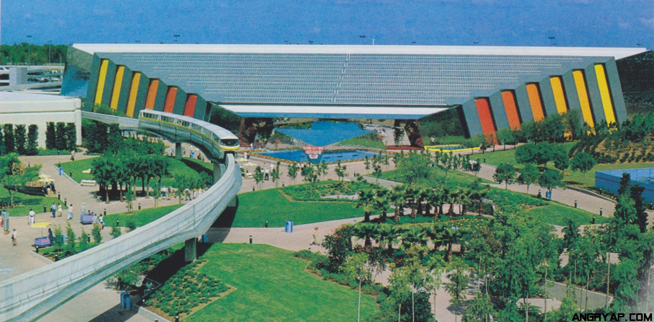 World of Motion. Notice above the queue you can clearly see the GM corporate lounge. It’s hard to believe that GM has remained the sponsor for this pavilion (now Test Track) for almost 30 years!